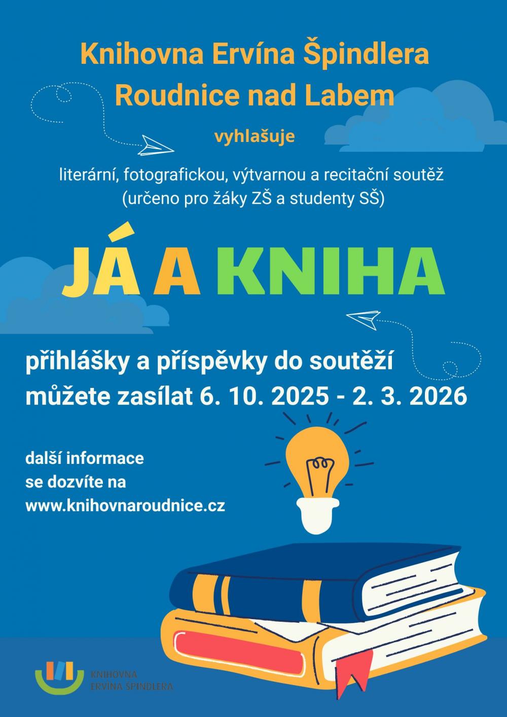 Knihovna Ervína Špindlera vyhlašuje literární, fotografickou, výtvarnou a recitační soutěž (určeno pro žáky ZŠ a studenty SŠ) „Já a kniha“